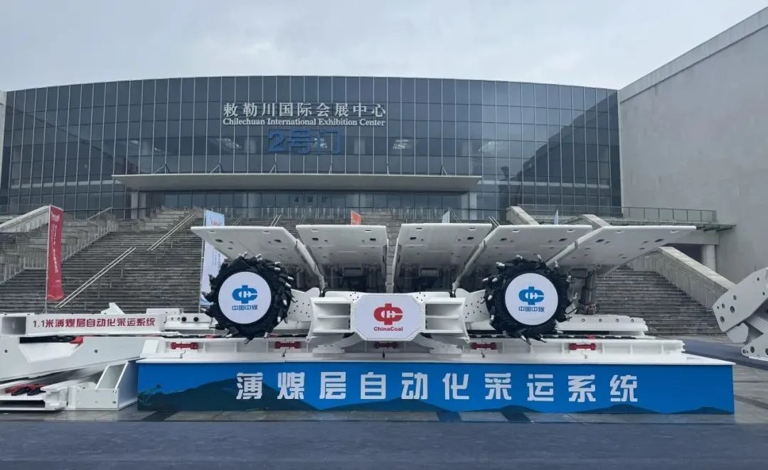 室外展區(qū)展示的薄煤層自動化采運系統(tǒng)設(shè)備,可實現(xiàn)采高1.1m及以上薄煤層工作面全自動化開采